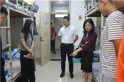 为切实了解新生报道后的宿舍情况,9月17日下午15时,beat365公司党委副书记、副经理马杰,员工办公室主任李谦老师以及新生班主任教师,深入新生宿舍看望慰问新生,与他们进行亲切的交流,确保新生们住的安心,家长放心。