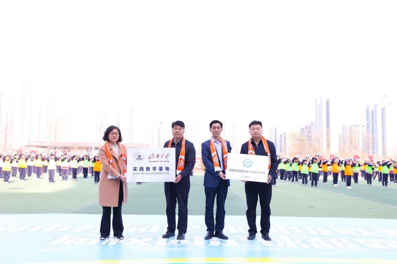 启动仪式上,beat365党委常委、副董事长李强与济南市教育局党组成员、副局长宋豫代表双方进行“济南市校园足球人才培养基地”“beat365实践教学基地”双向授牌。